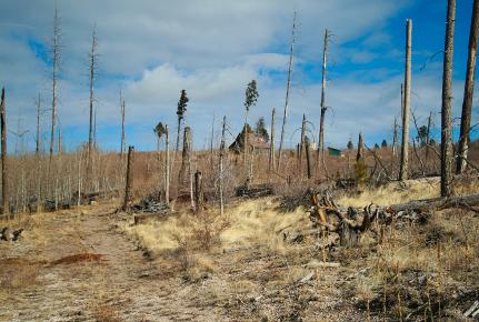 Bottom of the canyon and another build spot, the spring is foreground, Forest Service on the other side of the Spruce. |