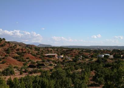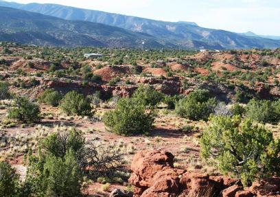 The photo on the left is a view to the South. You can see the Sandia Mountains which overlook Albuquerque at the middle left of the photo. If you decide to build on the bench, you will lose this view. |
