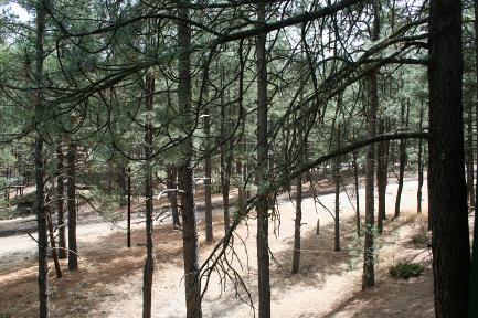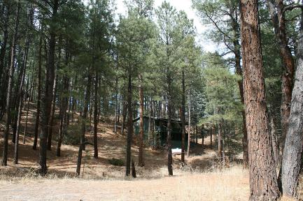 Although this cabin is within a subdivision , it is secluded and private as you can tell by the above photo. You can only see one home from this 1.5 acres. Lots of tall Ponderosa Pines. The road is maintained by Sandoval County. La Cueva Hermosa subdivision is one of the most sought after subdivision. |